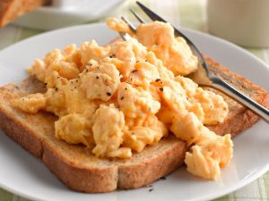 1 sudu besar susu tepung Fernleaf Full Cream, 2 biji telur ayam, sedikit garam, butter, roti bakar.