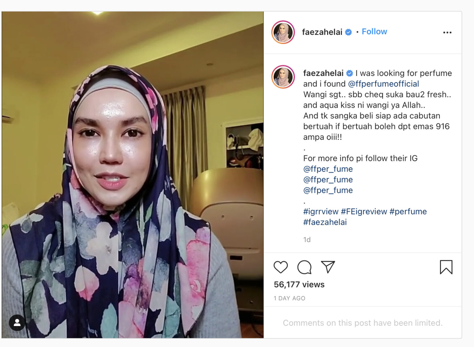 Baru-baru ini, satu perkongsian pelakon dan usahawan Faezah Elai di laman media sosial Instagram milikinya telah menjadi perhatian wargamaya.