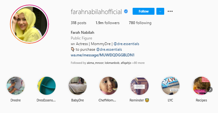 Gambar profil instagramnya juga kini menampilkan dirinya berhijab penuh. Sejak Jun lagi sebenarnya pelakon yang mula popular sejak berlakon di samping Zul Ariffin dalam drama rantaian Titian Kasih ini mula tampil memakai selendang yang menutupi sebahagian rambutnya.
