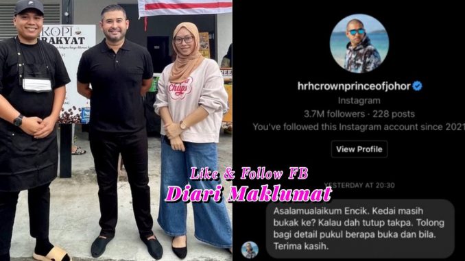Hati siapa yang tidak tercu1t girang apabila ada kerabat diraja yang sudi menc3mar duli singgah di gerai minuman yang diusahakan? Hal itu dialami oleh seorang pengusaha gerai minuman Kopi Rakyat yang terletak di Kampung Baru Majidee, Johor Bahru baru-baru ini.